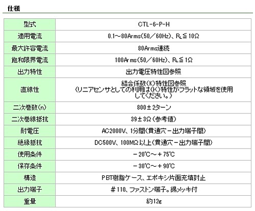 〔特 長〕・ヒータ・モータなど、一般産業機械用の汎用タイプ。生産累計100万個以上の実績を誇るベストセラー機種。(プリント板対応型)・貫通穴径φ5.8重量約12gの小型品ながら、0.1A ~ 80Aのワイドレンジをカバー。・800:1の高変流比で、二次電流が小さく直接電子回路へのインターフェースが可能。・出力端子は#110標準タブ。プリント板ハンダ付/リード線ハンダ付いずれにも対応可。