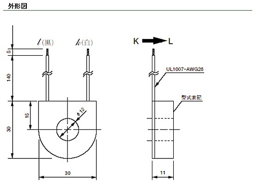 URD(ユー・アール・ディー) 出力リード線タイプのφ12穴・小型化交流電流センサ CTL-12L-8