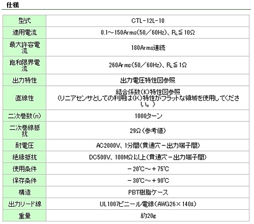 ・汎用標準品の中型電流センサ(CTL-12-S36-10)と巻線数(1000T)共通で適用電流を150Aまでとした電気仕様共通の小型化機種です。