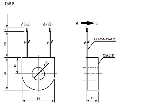 URD(ユー・アール・ディー) 出力リード線タイプのφ12穴・小型化交流電流センサ CTL-12L-10