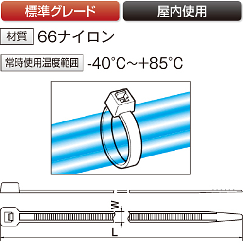 【全長(L)】(mm):251【幅(W)】(mm):4.8【最大結束径】(φmm):65【色】青【使用温度範囲】-40℃~+85℃