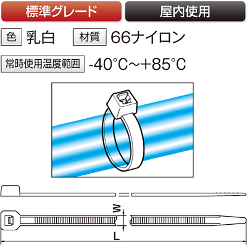 【全長(L)】(mm):460【幅(W)】(mm):7.6【最大結束径】(φmm):130【色】乳白【使用温度範囲】-40℃~+85℃