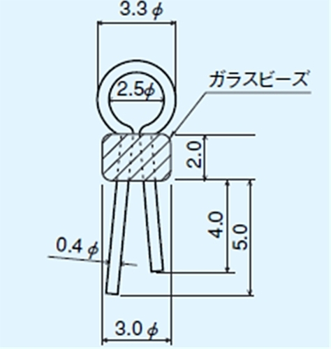 ・オシロスコープのプローブが全方向から引掛けられます。・ガラスビーズの色は10種類ありますので、信号ラインごとに色わけすることができます。・材質……リン青銅0.4φ・処理……LC-2-G……ニッケル下地金メッキLC-2-S……ニッケル下地スズメッキ・プリント板取付穴径……1.0φ・使用温度範囲……-40~+150℃・ビーズ色種類……黒、茶、赤、ダイダイ、黄、ウグイス、緑、空、紫、白・御注意茶、赤、ダイ、黄の4色にはRoHSで規制されているカドミウムがガラスの中に含有しています。技術的にカドミウムなしでは製造不可能の為、下記のLC-22を用意しています。残りの6色についてはカドミウムは含有していません。(ただし除外規定があります。総合カタログ18ページ御参照下さい。)※在庫切れの場合は別途御相談させて頂きます。
