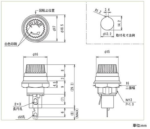 ■主絶縁材(ツマミ):P.B.T.(UL94V-0)