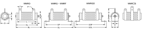 ・大電流用としてリボン抵抗線を使用しておりWM型より抵抗値の低い抵抗器です。