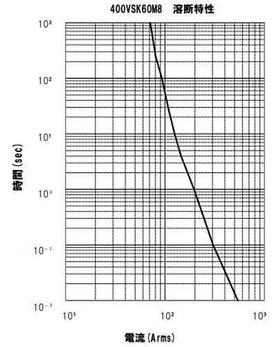 定格電圧・遮断容量:AC660V-10kA DC660V(L/R2ms)-10kA 最小遮断電流:AC660V-定格電流の6倍 DC660V-定格電流の20倍 DC570V-定格電流の8倍 最大アーク電圧:1320V