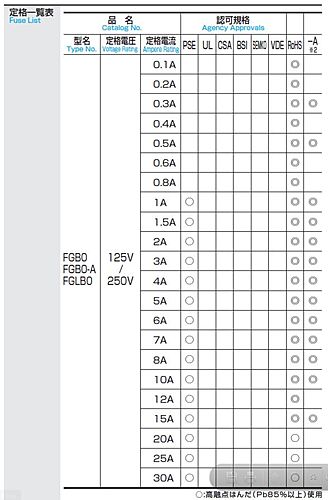 メーカー品番 :FGMB-A 125V 3A PBF
