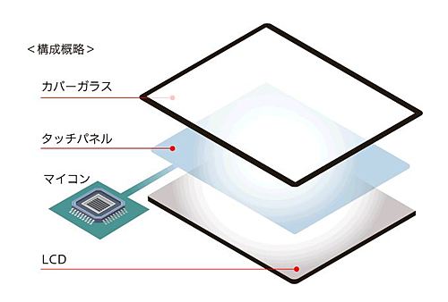 ■構造 本体層構成:Glass/Film、FPC:センサー一体型、コントロールIC:低価格マイコン