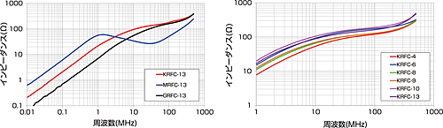 インピーダンス周波数特性(電線巻き数:1ターン)