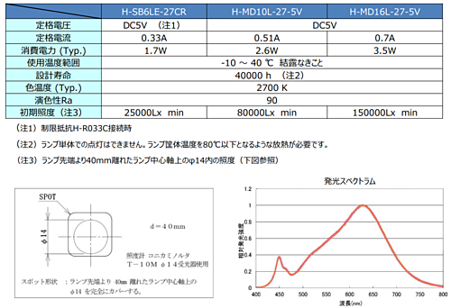・従来あったレンズ集光により発生するフィラメントやリード線の受光面への映り込みがありません。